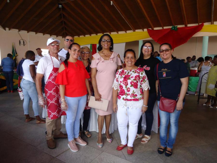 Durante la visita la Embajadora cubana, Iraida Guerrero Zuñiga le explicó a Dame Cecile La Grenade, sobre la preparación de los platos típicos cubanos y el Mojito, que fueron presentados en dicha Feria. La Gobernadora General saludo a los participantes en el stand y degustó el menú cubano.