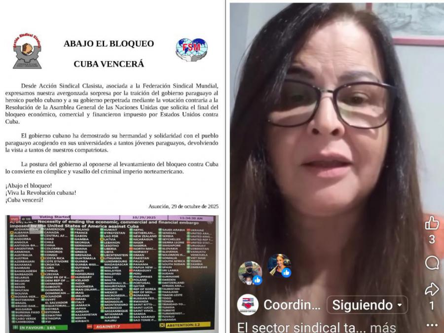 Desde Acción Sindical Clasista, asociada a la Federación Sindical Mundial, expresamos nuestra avergonzada sorpresa por la traición del gobierno paraguayo al heroico pueblo cubano y a su gobierno perpetrada mediante la votación contraria a la Resolución de la Asamblea General de las Naciones Unidas que solicita el final del bloqueo económico, comercial y financiero impuesto por Estados Unidos contra Cuba.