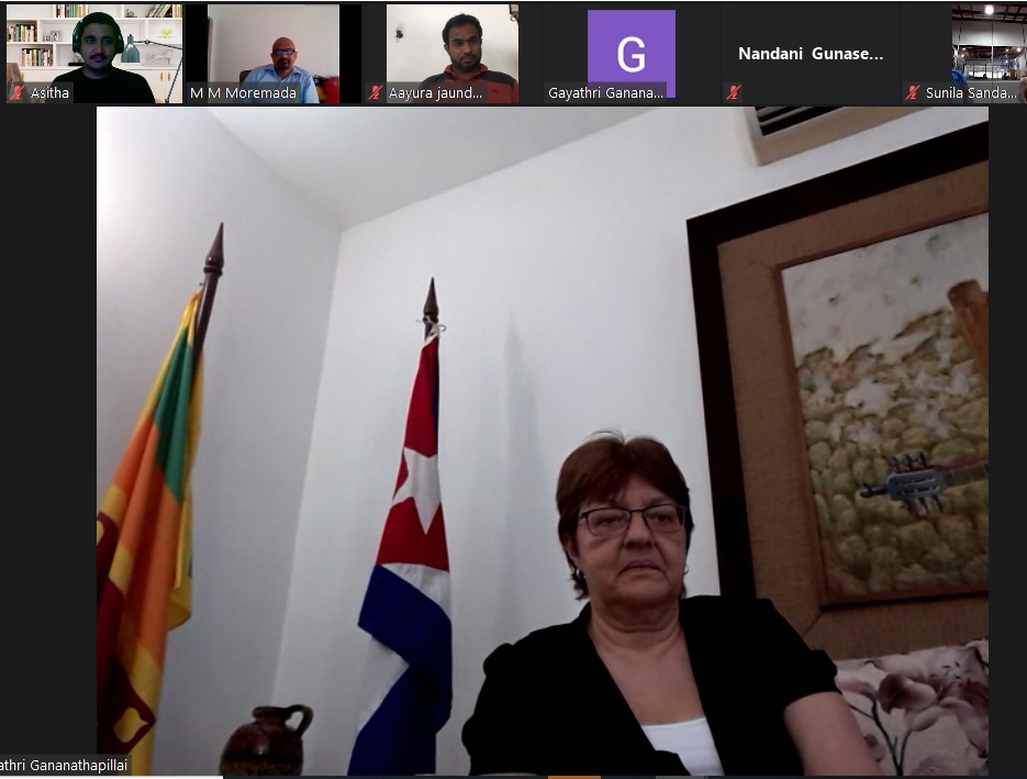La ceremonia virtual dio inicio con las palabras del Dr. Tissa Vitarana, miembro del Parlamento y Vicepresidente de la Asociación de Amistad Cuba-Sri Lanka, quien resaltó la encomiable y humanista labor realizada por el Contingente Henry Reeve desde su creación por el Comandante en Jefe en septiembre de 2005. Llamó a unirse a este movimiento en apoyo a la nominación de este Contingente Medico al Premio Nobel de la Paz 2021.