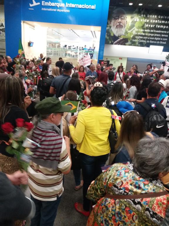 Alegria, satisfacción por el deber cumplido, dignidad y orgullo de cubano y de revolucionario, fue la respuesta de nuestros galenos durante este hasta luego. Gracias al pueblo de Brasil por haber brindado a estos héroes de la salud tanto cariño y amor.