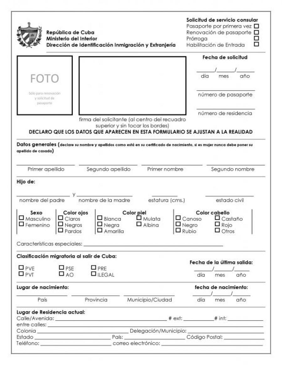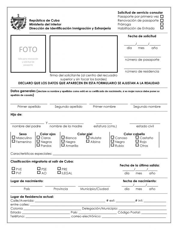 Hoja No.1 de la Planilla de Solicitud de Trámite por correspondencia: