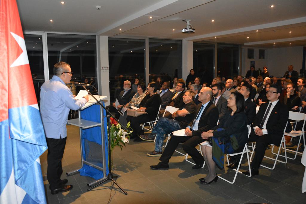El acto, realizado en la sede del Museo de Arte Cubano, en Viena, contó con la presencia de la Vicepresidenta del Instituto Cubano de Amistad con los Pueblos, Noemí Rabaza, quien realiza una visita a Austria, al frente de una delegación del ICAP. Se encontraron presentes además, miembros del cuerpo diplomático acreditado en Austria, representantes de partidos de izquierda y amigos de Cuba en general.
