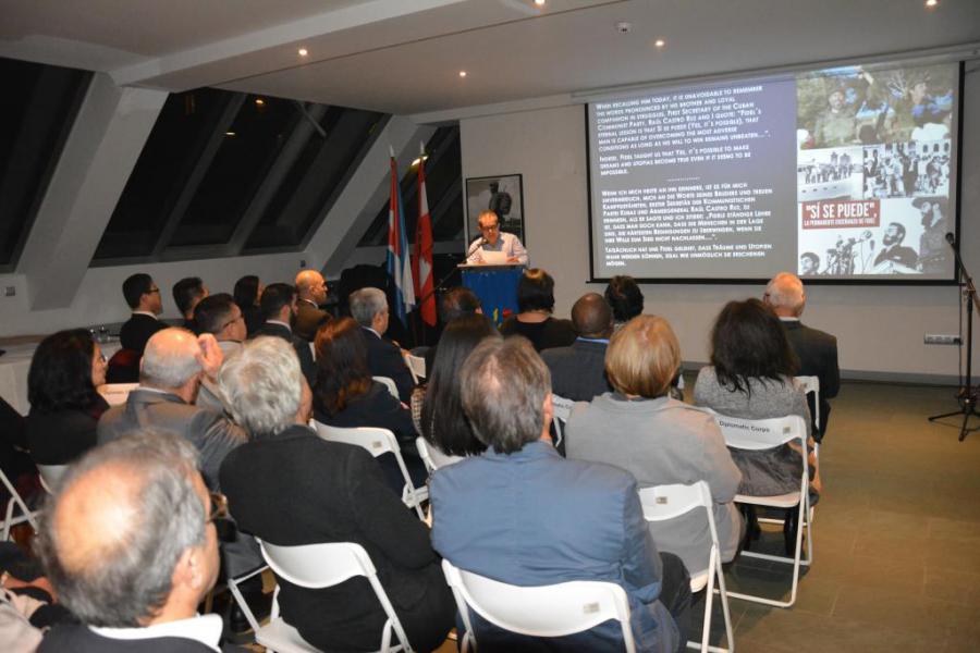 Al conmemorarse el segundo aniversario de haberse hecho eterna la presencia del Líder de la Revolución cubana, Comandante en Jefe Fidel Castro Ruz, la Embajada de Cuba en Austria, la Asociación de Amistad Austria-Cuba “ÖKG” y la Asociación de Cubanos Residentes “CubaVa”, reunieron en Viena a amigos de Cuba, miembros del Cuerpo Diplomático acreditado, autoridades de Austria y cubanos residentes, en un sentido acto de homenaje y recordación a su fecunda vida y obra.
