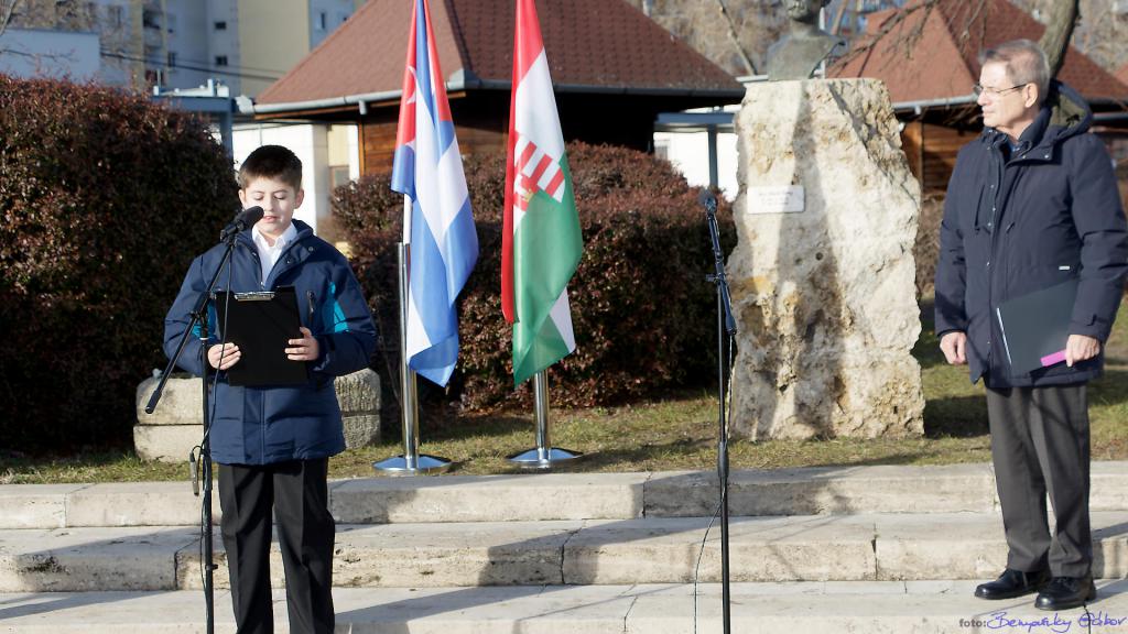 El Embajador y varios estudiantes colocaron una ofrenda floral, seguida de otras por parte de las autoridades locales, fuerzas políticas húngaras, el Embajador de Venezuela, cubanos residentes en Hungria, y representantes de la población allí presentes.