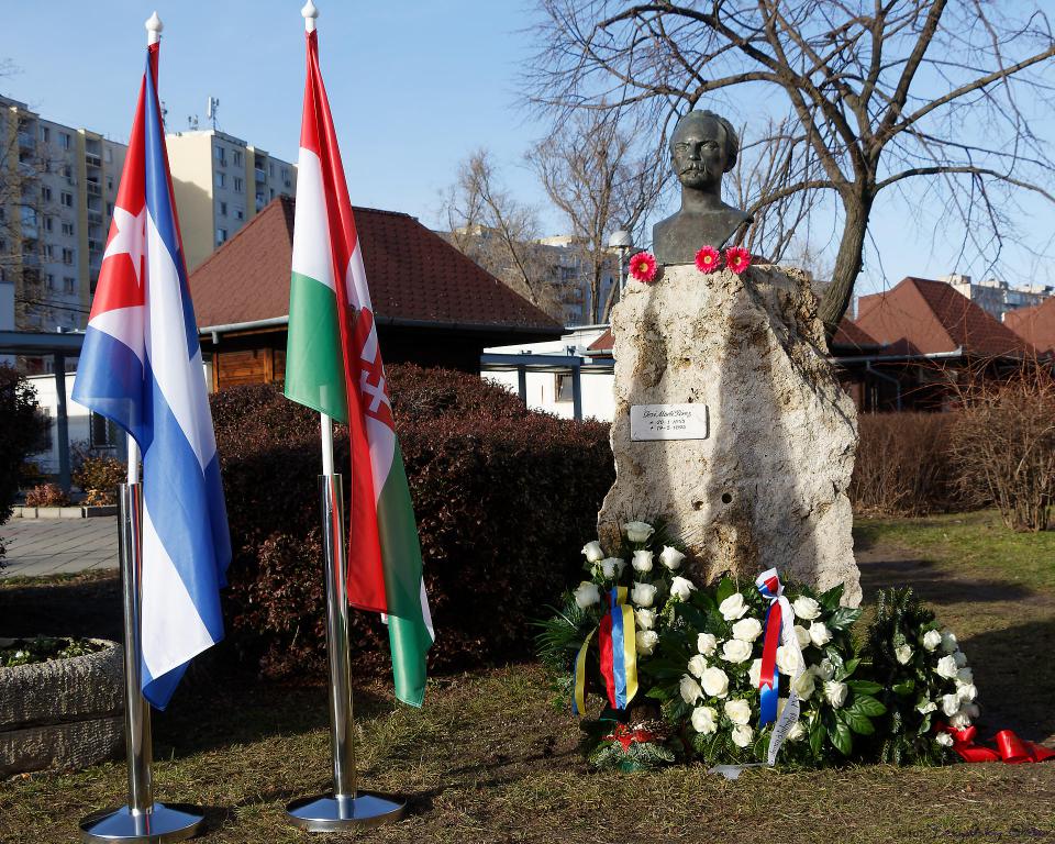 En conmemoración del 171 Aniversario del Natalicio del Héroe Nacional de Cuba, “José Martí”, se celebró en Hungría un acto de homenaje con la colocación de ofrendas florales ante el busto en su memoria.