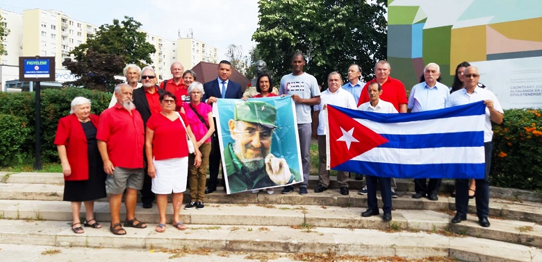 Ante el busto de José Martí erigido desde 1976 en el distrito XVIII de Budapest, el colectivo de la Embajada de Cuba, cubanos residentes, dirigentes de Organizaciones de Amistad, representantes de fuerza de izquierda, el Embajador de la República Bolivariana de Venezuela acreditado en Hungría y amigos de Cuba en general, rindieron emocionante homenaje al líder de la Revolución cubana, Fidel Castro Ruz en el 95 Aniversario de su Natalicio.