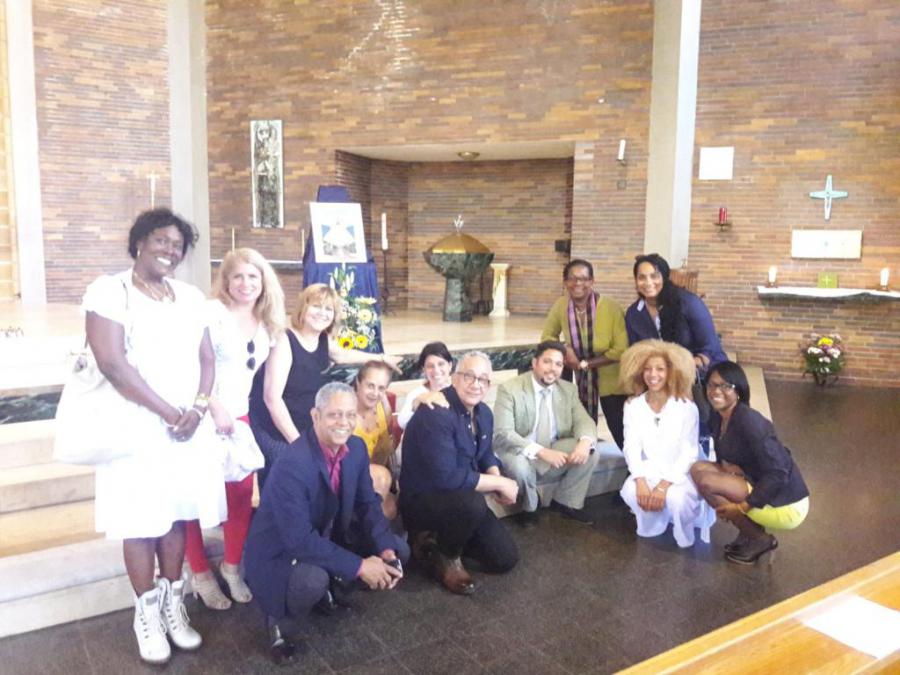 Berlín, 14 de octubre de 2018. Por invitación de la Iglesia St. Nikolaus, en actividad realizada a petición de sus feligreses cubanos, el Cónsul Dacheri López Valdivia y el Encargado de Cultura David Cleger Sabournin, junto a otros miembros del colectivo de la embajada, participaron en la primera fiesta dedicada a la Virgen de la Caridad del Cobre y Patrona de Cuba en la ciudad de Berlín.