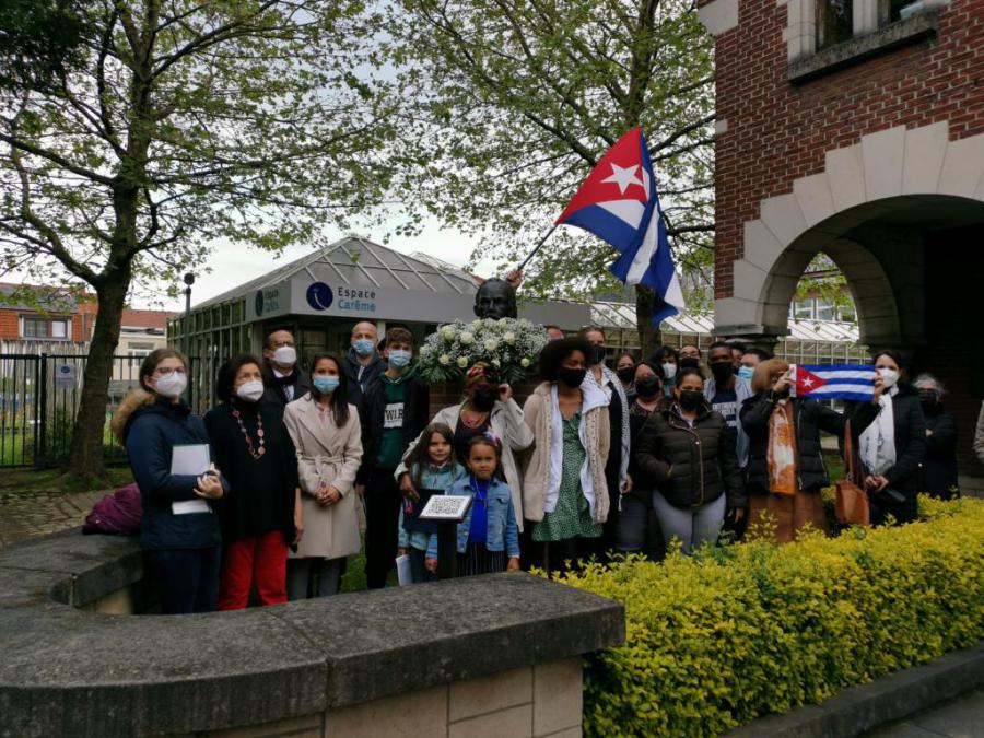 Bruselas, 19 de mayo de 2021- 126 años después de la caída en combate de cara al sol, del más universal de los cubanos señalando el camino de la libertad, miembros del cuerpo diplomático acreditado en Bruselas, de organizaciones solidarias y cubanos residentes se reunieron frente al busto que perpetúa su memoria en Bélgica, para rendirle homenaje.
