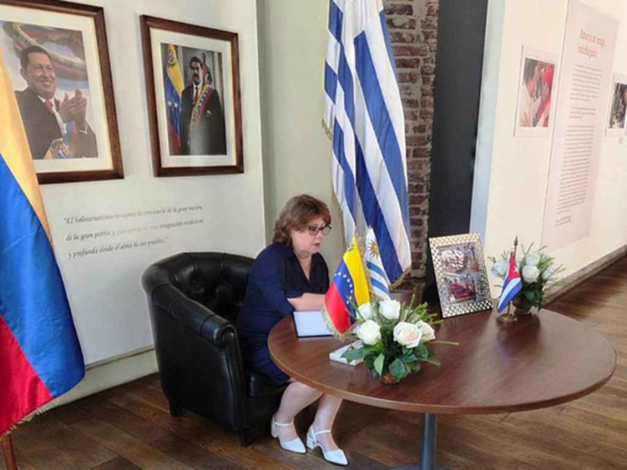 La embajadora de Cuba, Lissett Pérez fue la primera en firmar el libro en honor “a los compañeros caídos en la defensa de la soberanía de Venezuela y el presidente constitucional Nicolás Maduro”.