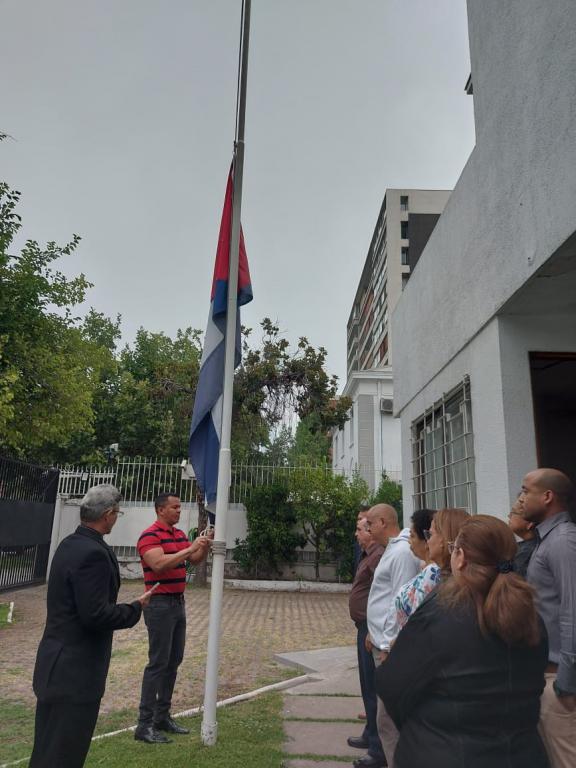 Santiago de Chile, 5 de enero de 2026.- El colectivo de la embajada de Cuba en Chile rindió hoy homenaje a los 32 combatientes de su país que perdieron la vida el 3 de enero durante el criminal ataque de Estados Unidos contra Venezuela.
