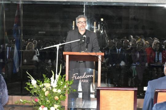 En la noche del 14 de mayo, el emblemático Freedom Park de Pretoria quedó desbordado con la participación de centenares de personas en un gran evento de solidaridad con Cuba, en que se rindió tributo a los internacionalistas cubanos caídos en las luchas por la liberación de África. El acto sirvió de marco ideal para celebrar el 30 Aniversario de la Batalla de Cuito Cuanavale, el Mes de Africa y el Centenario de Nelson Mandela.