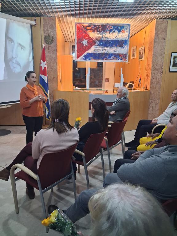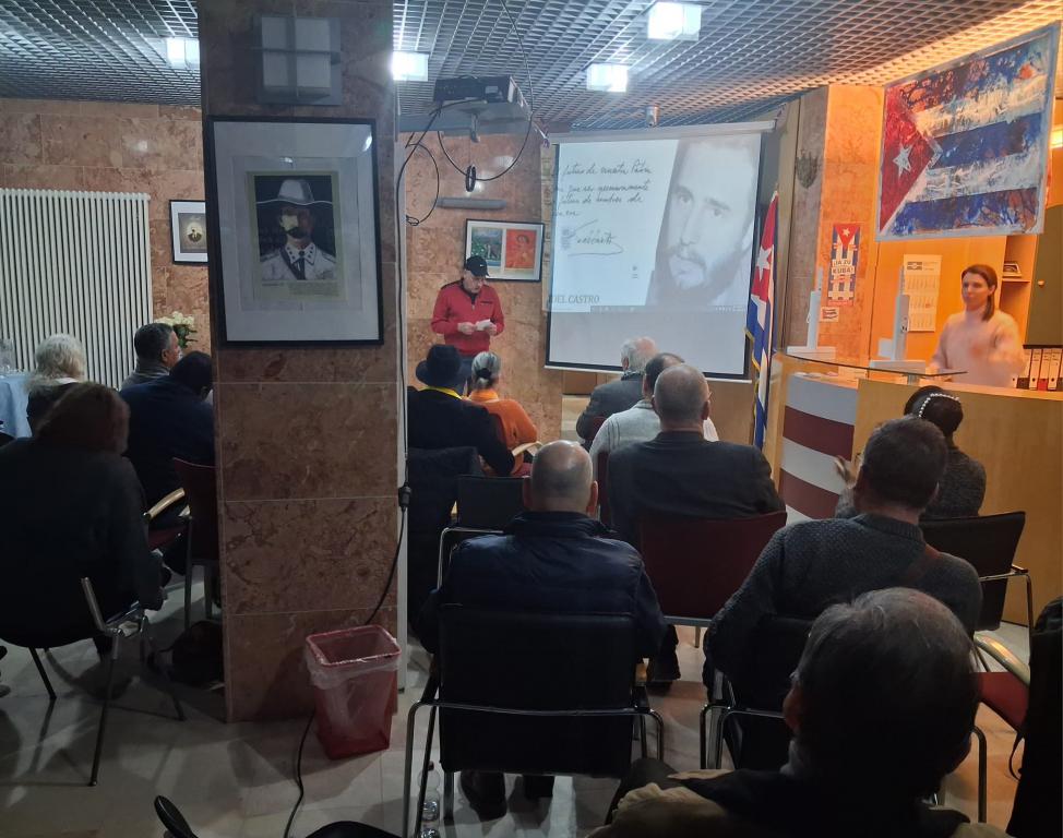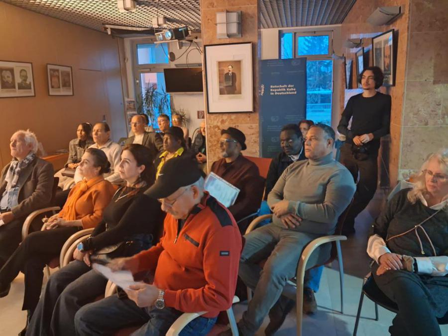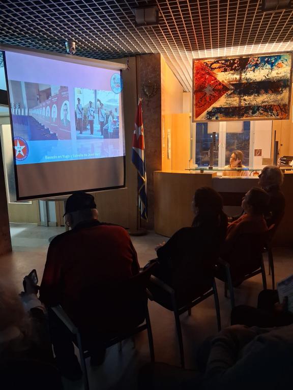 Berlín, 26 de enero de 2026.- El pasado sábado, 24 de enero, los miembros de la Asociación de Cubanos residentes en Alemania, La Estrella, se dieron cita en el salón del Consulado de la Embajada cubana, junto a representantes de la solidaridad, para homenajear a José Martí, en saludo al 173 aniversario de su natalicio, el próximo 28 de enero.  La convocatoria, en esta ocasión, los unió también para rendir tributo a los 32 cubanos caídos en el cumplimiento del deber en la hermana República Bolivariana de Venezuela durante el ataque imperialista de Estados Unidos, el 3 de enero de 2026. Un material audiovisual, realizado por la Asociación, mostró las imágenes del homenaje popular realizado en todo el país tras el recibimiento de los restos mortales de estos héroes, que ahora engrosan el panteón de los mártires de la Patria.