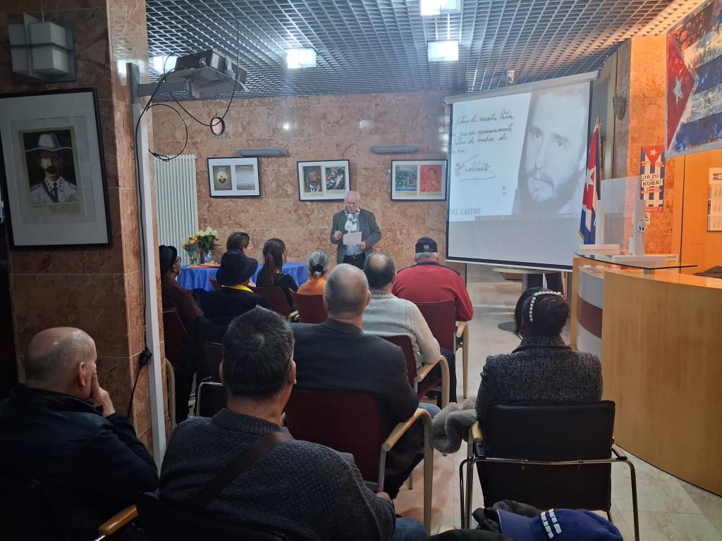 En las palabras centrales del encuentro, José Conde, presidente de La Estrella, tras felicitar por un año más de revolución, destacó el vínculo entre las ideas de Martí y las del Comandante en Jefe Fidel Castro, continuidad de lucha revolucionaria por lograr la independencia cubana: “Martí pensó la nación. Fidel la defendió, la levantó, la sostuvo. Uno sembró conciencia, el otro organizó esperanza. Y ambos desde tiempos distintos, hablaron el mismo idioma: el de los pobres, el de los humildes, el de los que no se resignan”, expresó. Así como nuestros abuelos habrían tenido la dicha de vivir los tiempos de Martí, nosotros habríamos tenido el privilegio de vivir los tiempos de Fidel, de trabajar, luchar y resistir bajo su ejemplo, afirmó. Por ello, subrayó, comenzamos el año del centenario del Comandante, “recordando que Fidel no es solo un nombre, sino una conducta” y reafirmó: “Hoy, al recordar a Martí, renovamos nuestra responsabilidad con Cuba. Con su presente difícil, con su futuro necesario.” Y concluyó “Que Martí nos siga enseñando a pensar. Que Fidel nos siga enseñando a actuar.”