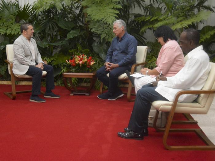 l Presidente Díaz-Canel ha accolto Marco Papacci con un “Benvenuto. E’ un piacere per noi riceverla per il suo eccezionale incarico alla guida dell’Associazione Nazionale di Amicizia Italia-Cuba e per ringraziarvi e riconoscervi “tutto il merito per il ruolo che avete svolto nel sostenere il nostro Paese in innumerevoli momenti”.I