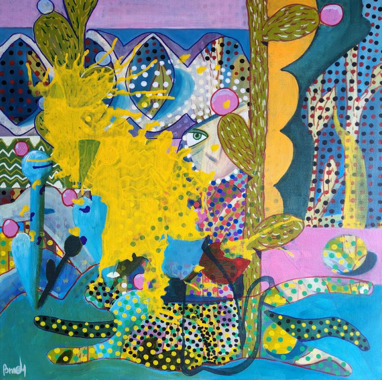 “Beso de elefante”, “El grito”, “En el silencio de la espera”, “La jugadora pésima”, “El sonido del humo y el té”, “El acróbata del pescado”, “No puedo contarlo todo yo sólo” y la obra que da título a la exposición “Suspendido en el paisaje”, son algunos de las pinturas que componen la interesante y original exposición. Todas, en vibrantes colores y listas para la interpretación individual de sus mensajes intrínsecos, desde diferentes planos y perspectivas.