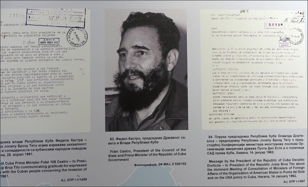 El Embajador de Cuba en Serbia, Leyde Ernesto Rodríguez Hernández, se dirigió a los visitantes para agradecer y expresar su reconocimiento a la iniciativa del Centro Cultural de Temerin, así como al Archivo de Yugoslavia por su acostumbrado apoyo, entusiasmo, decisión, creatividad y su empeño en estas actividades relacionadas con los aniversarios del establecimiento de relaciones diplomáticas entre La Habana y Belgrado o en ocasión de la visita a Serbia, el 20 y el 21 de junio de 2023, del Presidente de Cuba, Miguel Díaz-Canel, donde también fue presentada, en el Palacio de Serbia, una excelente exposición que despertó el interés y el reconocimiento de nuestro presidente. Los documentos y las fotos, que se exponen aquí, dijo el diplomático cubano, constituyen materiales históricos que avalan una hermosa historia de vínculos ininterrumpidos entre Serbia y Cuba, los cuales experimentaron un notable impulso tras el triunfo de la Revolución Cubana y la visita a Belgrado del líder histórico de la Revolución Cubana, Fidel Castro Ruz, en 1976.