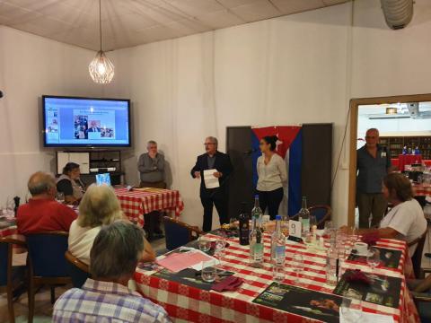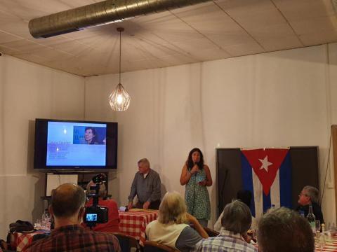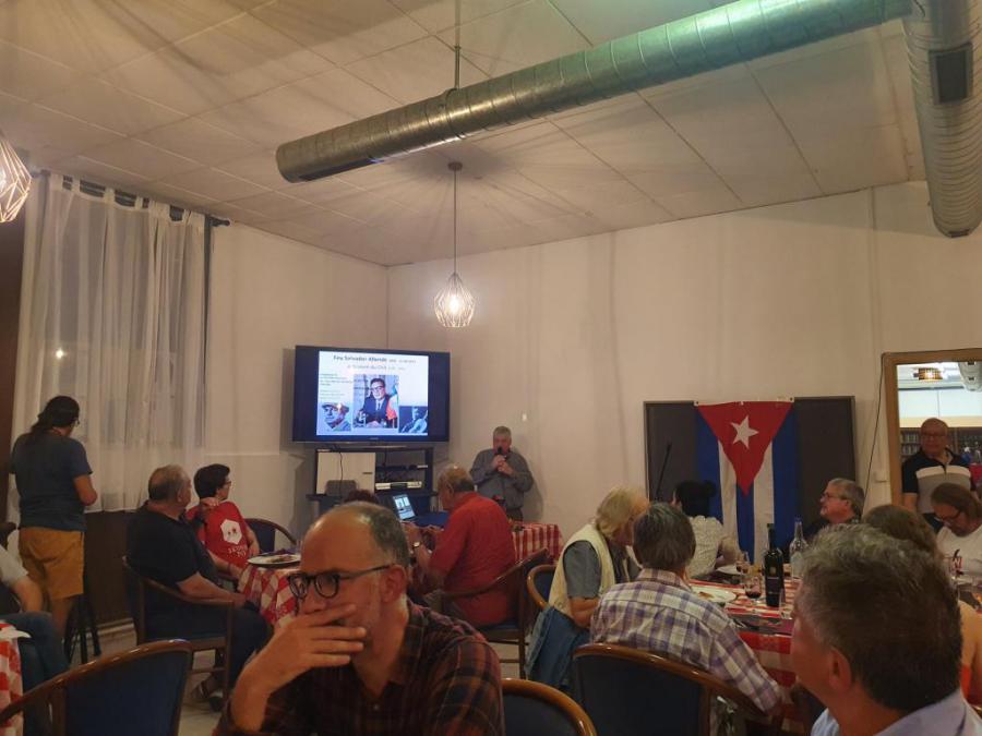Luego de la presentación inicial del presidente de las Sección de Vaud de la ASC, Michel Fleury, y de un homenaje a Salvador Allende, el saludo de bienvenida estuvo a cargo de la Sra. Natacha Ribeaud Eddahbi, presidenta del Consejo comunal de Yverdon-les-Bains, quien agradeció la invitación y la iniciativa en esta ciudad. Además, trasladó un agradecimiento especial a los médicos cubanos integrantes de las brigadas Henry Reeve por su valiosa labor en el enfrentamiento a la COVID-19 en diversos lugares del mundo.