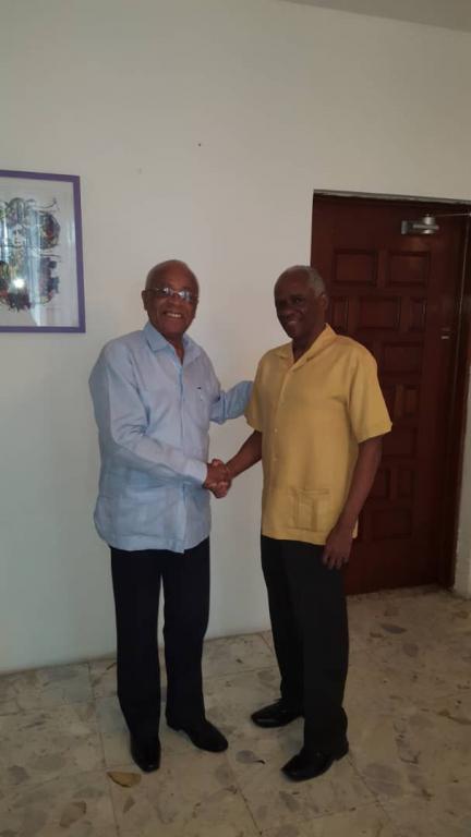 Puerto Príncipe, 12 de junio de 2018- El coordinador nacional del partido Organización del Pueblo para la Lucha (OPL), Edgard Leblanc, acompañado de Gélorme Juste, coordinador del Partido para la Juventud y la Universidad, intercambiaron; la víspera, con el embajador de Cuba en Haití, Luis Castillo Campos sobre la próxima celebración del XXIV Foro de Sao Paulo en La Habana, en el próximo mes de julio.