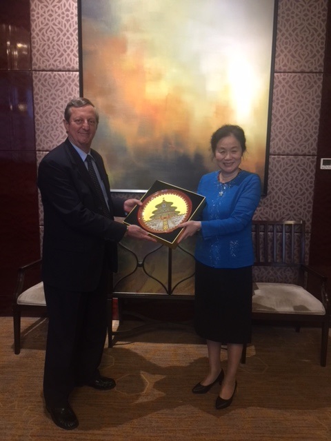 Beijing, 18 de junio de 2018.- El Embajador Miguel Ángel Ramírez Ramos, fue recibido en la sede de la Federación Nacional de Mujeres de toda China por la Sra. Mu Hong, Directora General del Departamento de Enlace Internacional de la organización china.
