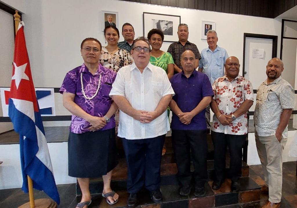 En el marco de la conmemoración del 10 de octubre, el Embajador de Cuba en Fiji, José M. Galego Montano, concurrente en Micronesia, Kiribati, Nauru, Islas Marshall, Palau, Papua Nueva Guinea, Samoa, Tonga, Tuvalu, Vanuatu e Islas Salomón, realizó un intercambio amistoso con los jefes de misiones de las Islas del Pacífico acreditados en Suva.