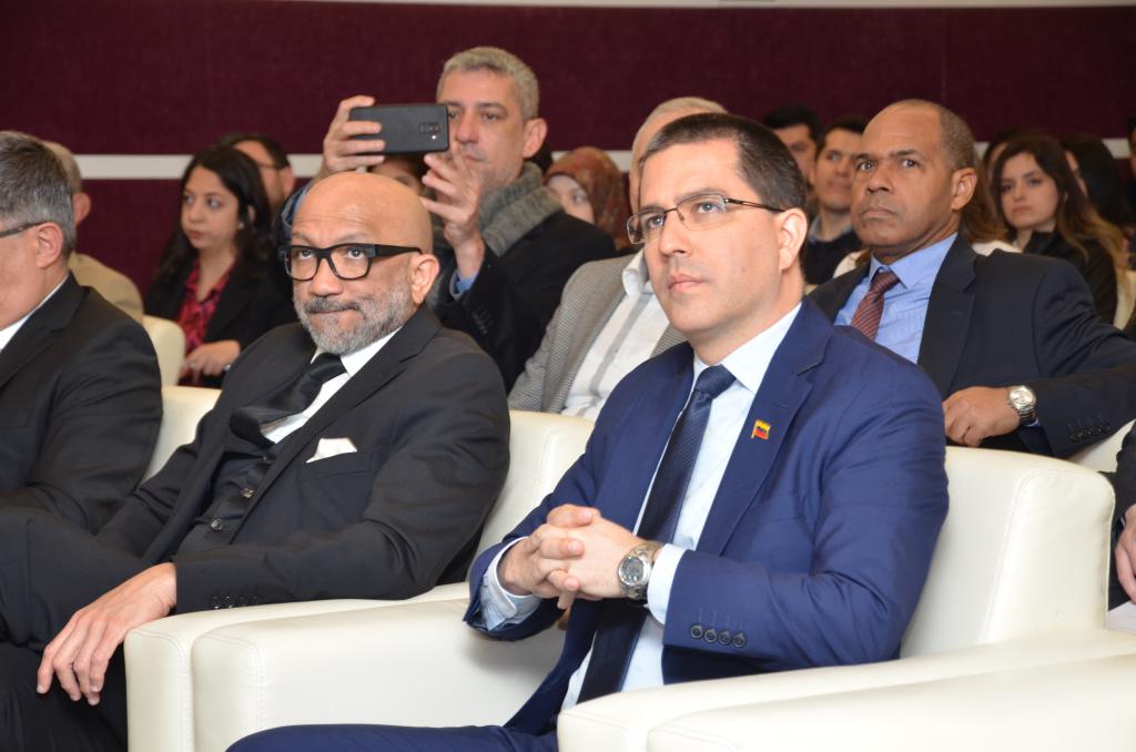 El Ministro expuso, tanto desde el punto de vista histórico como actual, las acciones de los Estados Unidos para derrocar la Revolución Bolivariana, incluida la amenaza de una agresión armada. Asimismo, resaltó la resistencia del pueblo venezolano frente a la nueva arremetida imperial y su intento de aplicar la Doctrina Monroe, su fidelidad al legado de Bolívar y Chávez, y el apoyo recibido por muchos países, como Turquía, Rusia y Cuba.