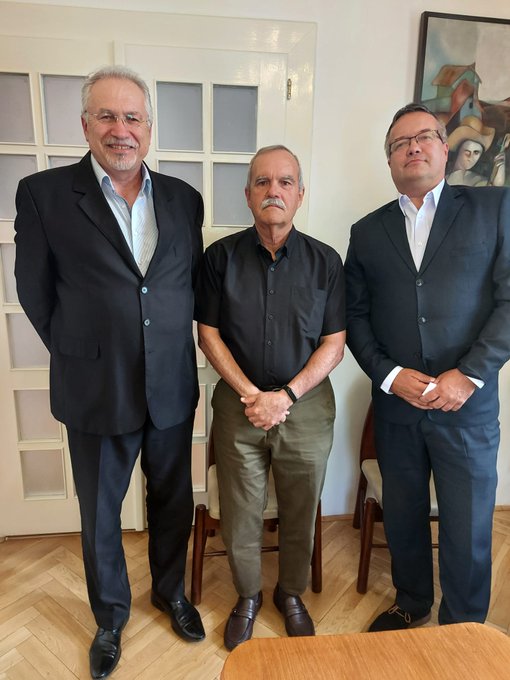 PRAGA, 4 de junio del 2022.- El Embajador de Cuba en la República Checa, Danilo Alonso Mederos, recibió en la sede diplomática a los empresarios checos Stanislav Mikěska y Václav Hung del Grupo Alytir, interesados en invertir en Cuba, en el área de la producción avícola.