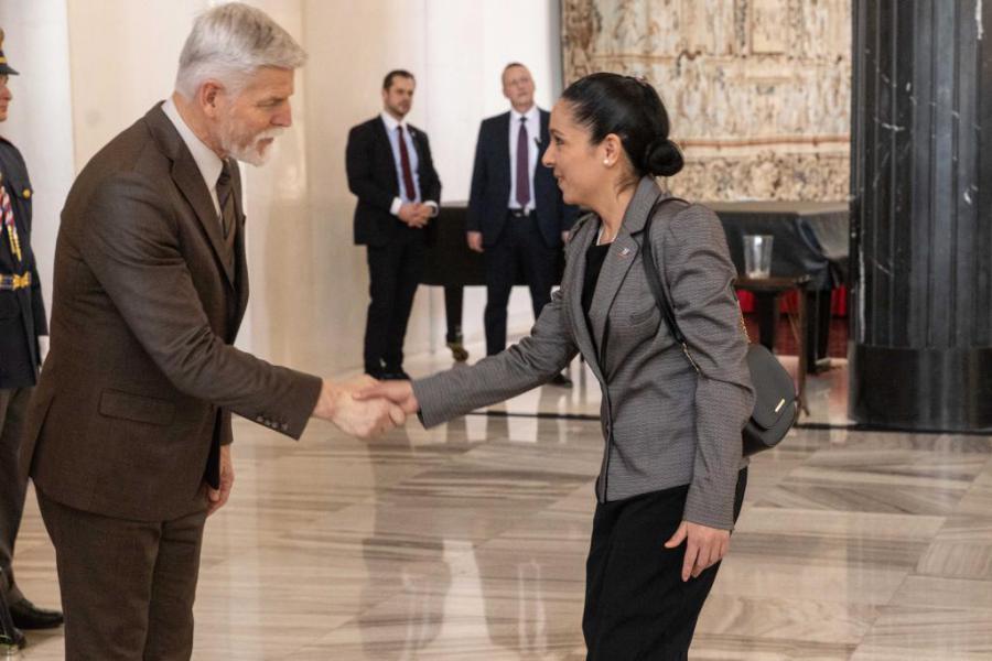 Durante el breve intercambio, la diplomática cubana trasladó felicitaciones al mandatario y ratificó la voluntad de Cuba de estrechar relaciones bilaterales con la República Checa.
