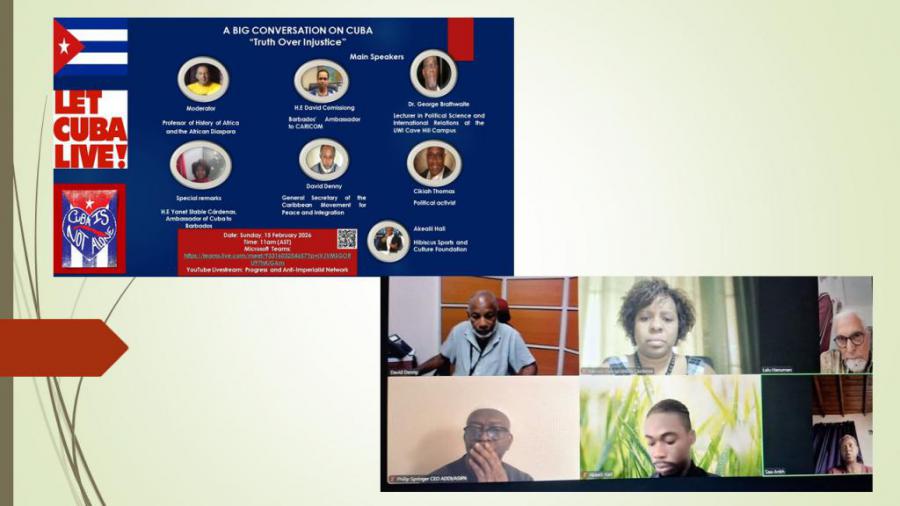 Durante casi tres horas este domingo 15 de febrero amigos solidarios con Cuba, representantes y miembros de difrentes organizaciones de solidaridad, estuvieron conversando con la Embajadora de la República de Cuba en Barbados, Yanet Stable Cárdenas, en una reunión online, acerca de la situación actual que vive el pueblo cubano a partir del recrudecimiento del bloqueo impuesto por EE.UU.