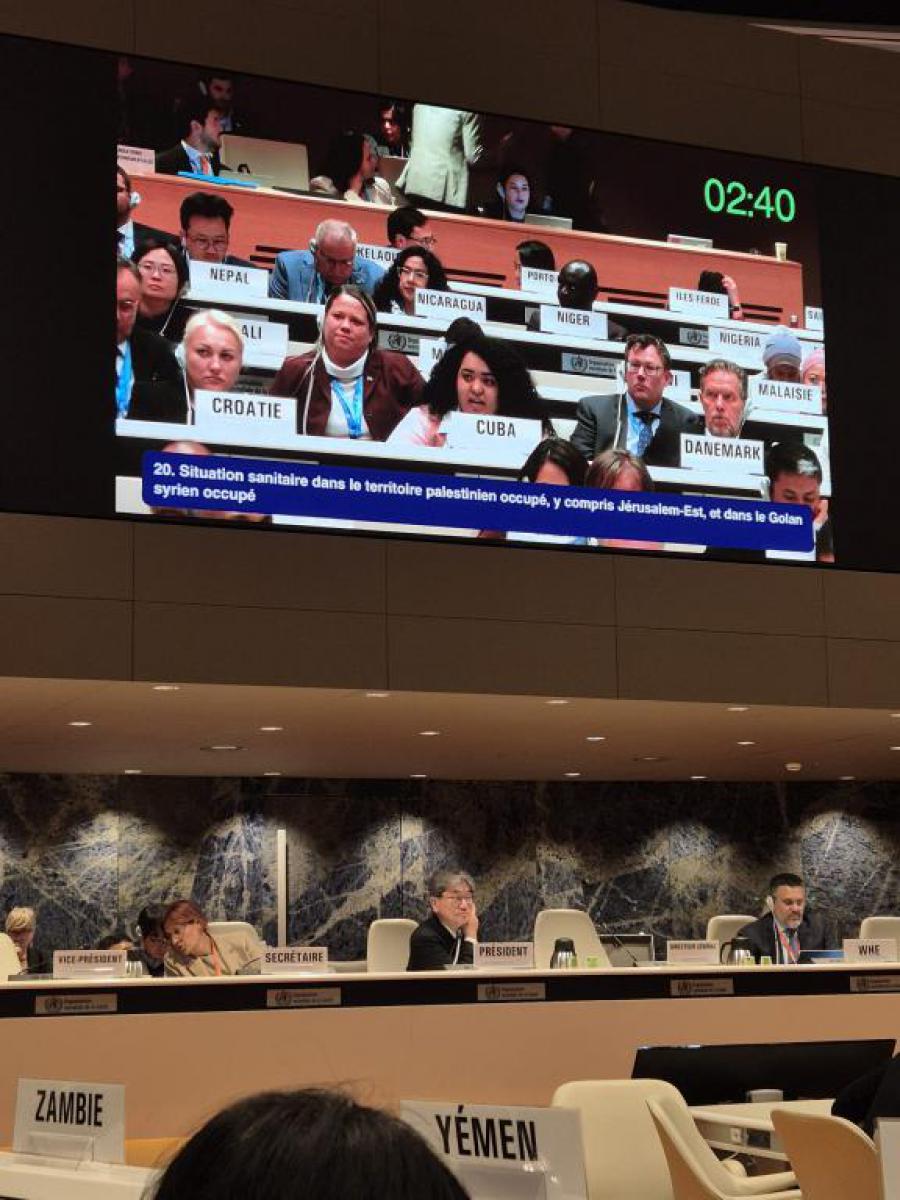 Deseo expresar nuestra profunda preocupación y condena hacia las prácticas sistemáticas del Estado de Israel, que han llevado a una grave crisis de salud en los territorios ocupados, incluyendo Jerusalén Oriental y los Altos del Golán sirios.