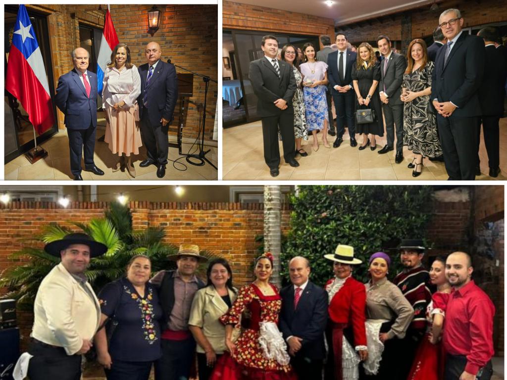 Asunción, 18 de setiembre de 2024. El recién acreditado Embajador de Chile en Paraguay, Manuel Francisco Gormaz Lira, invitó a las autoridades nacionales y el cuerpo diplomático a la recepción por el Día de la Independencia, al que asistió el Embajador cubano, Francisco Fernández Peña, con quien compartió sus experiencias por haber cumplido anteriormente misión diplomática en La Habana. En la Residencia del Embajador anfitrión actuó el grupo folclórico chileno “Horizonte”.
