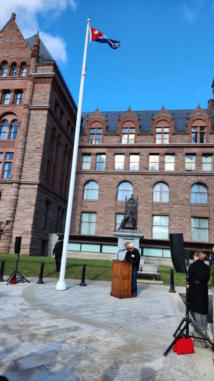 Ottawa, 4 de enero- En la sede del Edificio Legislativo de la provincia de Ontario se realizó la ceremonia de izamiento de la bandera cubana, con motivo del 65 Aniversario del Triunfo de la Revolución.