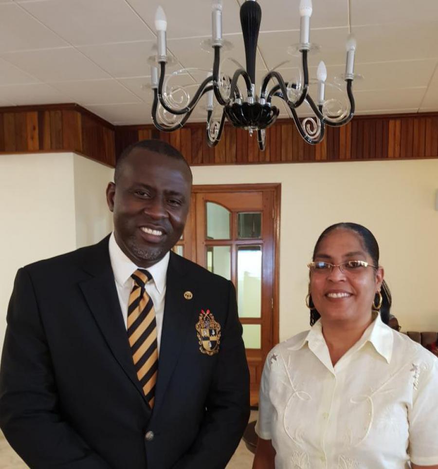 Monrovia, 10 de enero, 2021.- En el marco de un cordial encuentro sostenido entre el ex viceministro primero de Relaciones Exteriores de Liberia, actual miembro de la Junta de la Universidad Starz, y presidente de la Junta de CB Vocational & Technical, Sr. B Elias Shoniyin y la Jefa de Misión de Cuba, Mercedes L. Martínez Herrera, el primero agradeció a la diplomática cubana la posibilidad de este intercambio.