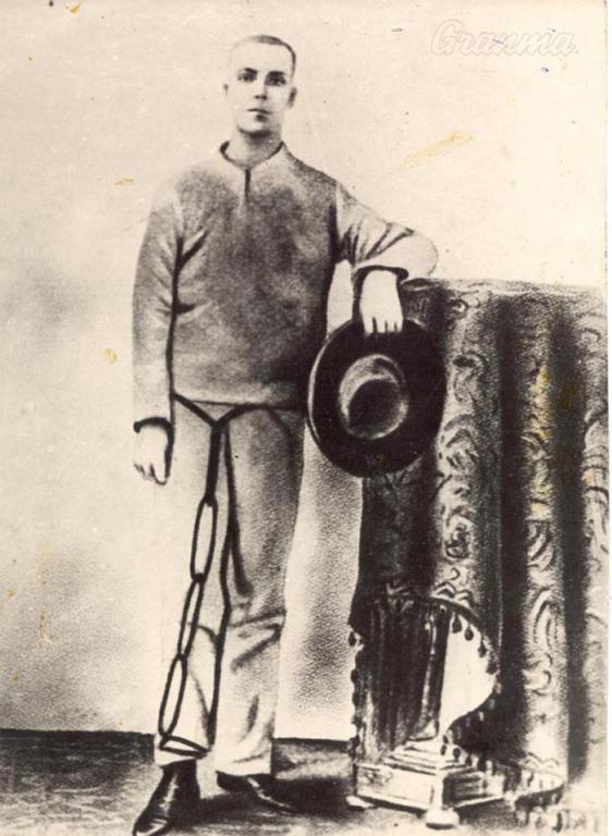 Al siguiente día lo pelan al rape, le dan un sombrero de ala ancha y lo visten con las ropas de presidiario. Le fijan en el tobillo de la pierna derecha un grillete, unido a una cadena con tres largos eslabones que rodea su cintura. Desde este día trabajará en la cantera de San Lázaro, en la sección llamada La Criolla. Luego lo retratan en una de las celdas del presidio.