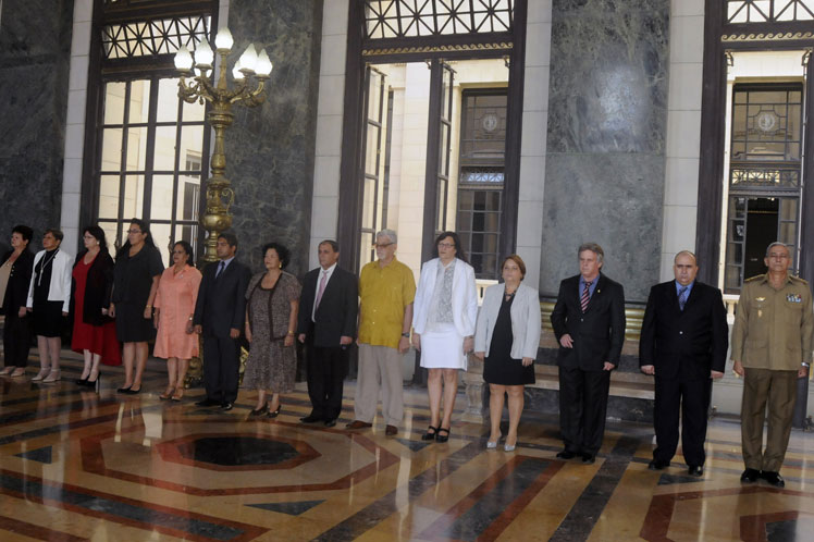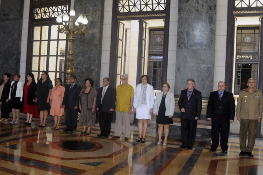 En el acto encabezado por el presidente del Parlamento, Esteban Lazo, y el primer vicepresidente cubano, Salvador Valdés, las 17 autoridades electorales recibieron la certificación que los acredita como miembros de la comisión y firmaron el juramento.