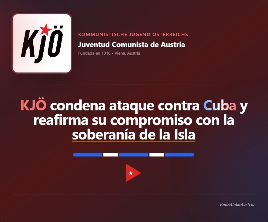 La organización juvenil austriaca defiende el derecho de Cuba a proteger su soberanía e independencia frente a las agresiones externas, y subraya la necesidad de fortalecer la solidaridad internacional con el pueblo cubano en el actual contexto de recrudecimiento del bloqueo.