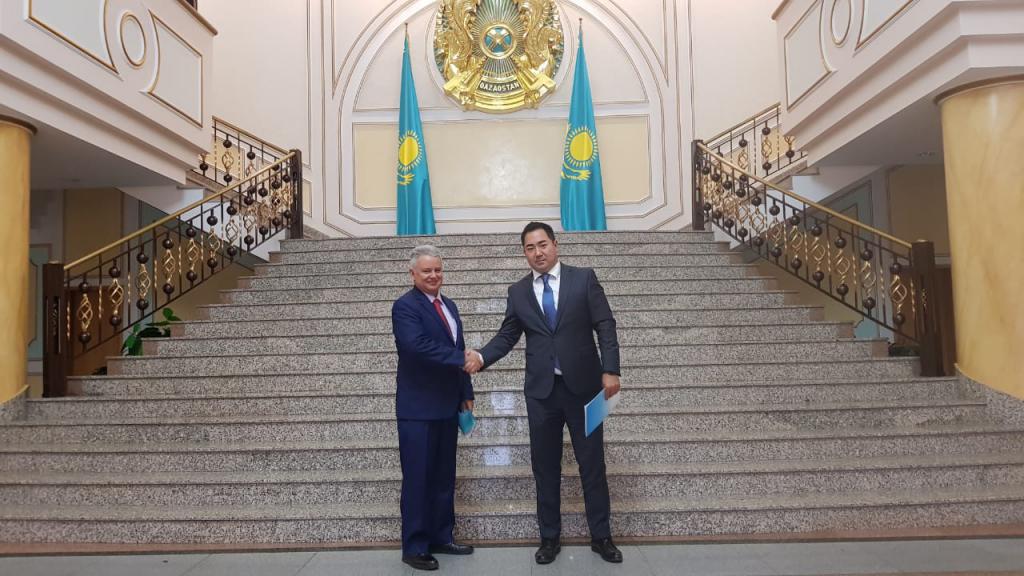 Nur- Sultán, 30 de octubre de 2019. El embajador de Cuba en Kazajstán, Emilio Pevida Pupo, fue recibido en la sede de la Cancillería por el Sr. Bulat Sugurbayev, Director General del Departamento de América del Ministerio de Relaciones Exteriores de ese país, con quien pasó revista al estado actual y perspectivas de las relaciones bilaterales y multilaterales entre los dos países.