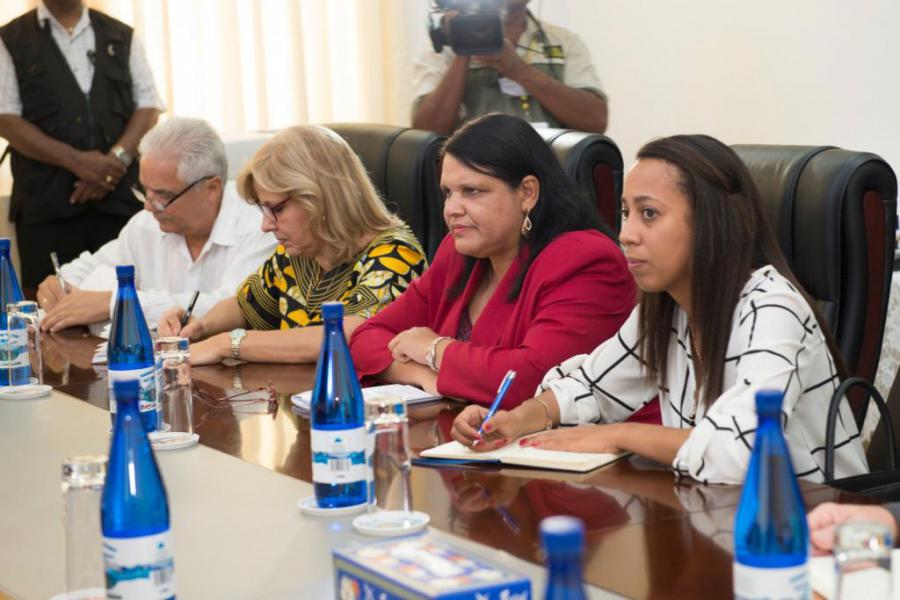 La Vicepresidenta López Acea y la delegación oficial fueron recibidos por el Vicepresidente, Hon. Prea, la Secretaria, la Sra. Jutta Alexis y la Secretaria Adjunta, la Sra. Tania Isaac al llegar al recinto de la Asamblea Nacional. Seguidamente realizaron un breve recorrido por la Cámara donde se llevan a cabo los debates parlamentarios, así como al Museo Parlamentario.
