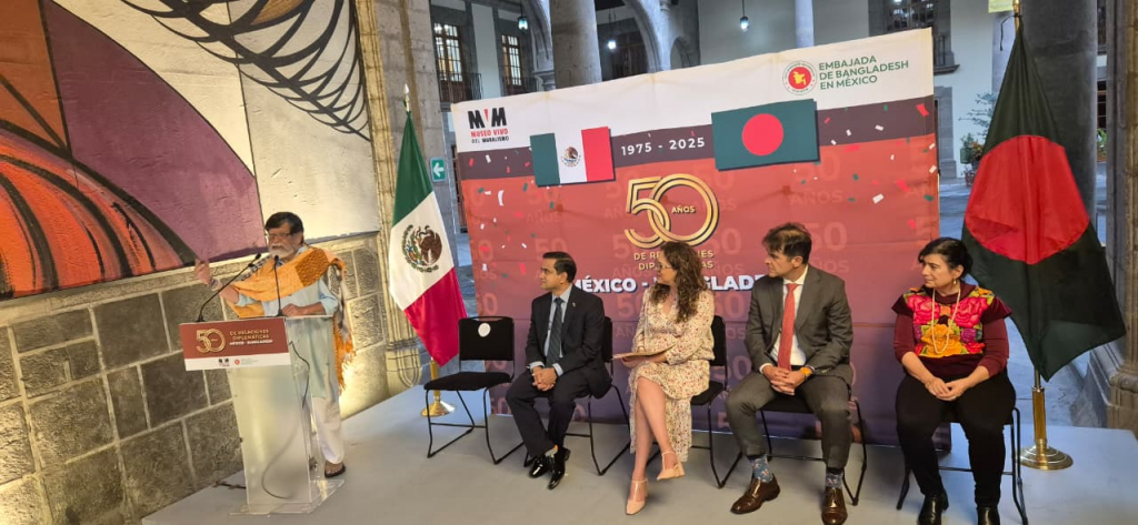 Ciudad de México — La Embajada de Bangladesh en México celebró el 50 aniversario del establecimiento de relaciones diplomáticas entre ambos países con un acto especial en el Museo Vivo del Muralismo. Durante la celebración, se inauguró la exposición fotográfica titulada "Imágenes que rompen el Silencio", del reconocido fotógrafo Shahidulalam.