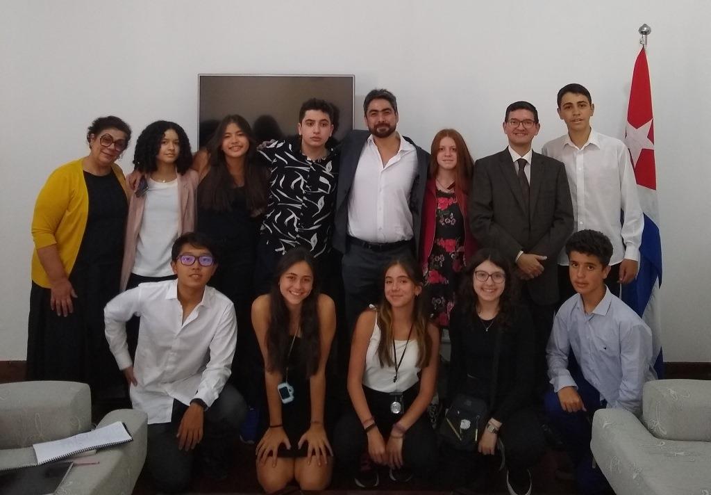 Brasilia, 9 de agosto de 2022.- La Embajada de Cuba recibió la visita de 10 estudiantes de 9no grado y 2 profesores de la Escuela Bilingüe Multicultural Aubrick, del Estado de Sao Paulo, interesados en conocer el desempeño de Cuba en las relaciones internacionales y las características del Estado cubano.