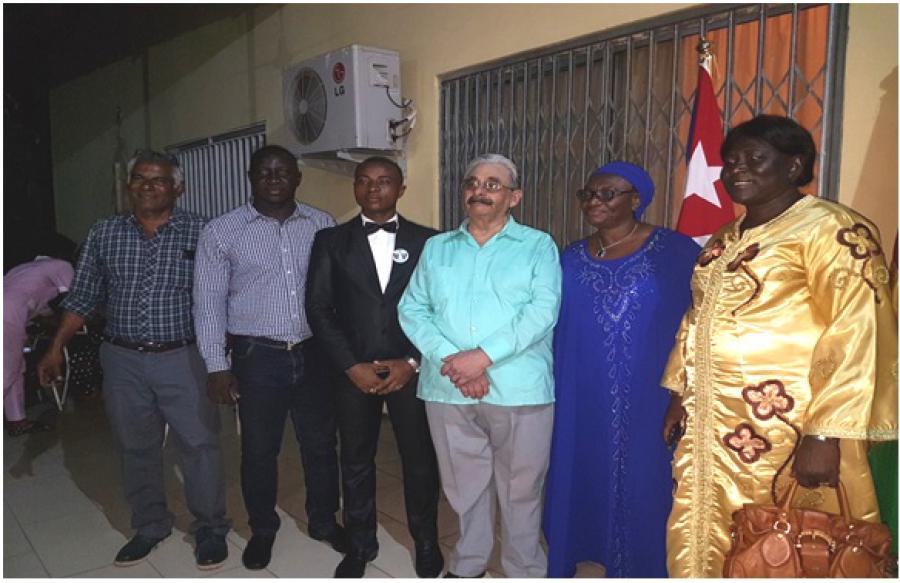 Tras escuchar el Himno Nacional de Cuba, símbolo de independencia y de combate, se hizo un minuto de silencio en honor la eterna bailarían cubana, Alicia Alonso. En el acto Participó el cuerpo diplomático acreditado, funcionarios del gobierno, miembros de la Asociación de Amistad Guinea-Cuba, la Asociación de Cubanos Residentes en Guinea y de la Asociación de Graduados en Cuba. El Presidente de la Asociación de Amistad Guinea - Cuba presentó un mensaje alegórico a la fecha y a continuación se dio lectura al Discurso del Embajador de la República de Cuba, Roberto Rodríguez Peña, con motivo de esta tradicional e importante fecha histórica. Destacó que a pesar del férreo bloqueo y de la campaña medicada negativa, el pueblo cuenta con instituciones y un extraordinario desarrollo cultural en todas esferas como heredera del aporte material e espiritual que ha heredado de las generación anteriores que lucharon por la independencia y la verdadera libertad a partir de la identidad y la cubania, que caracteriza nuestro heroico pueblo.