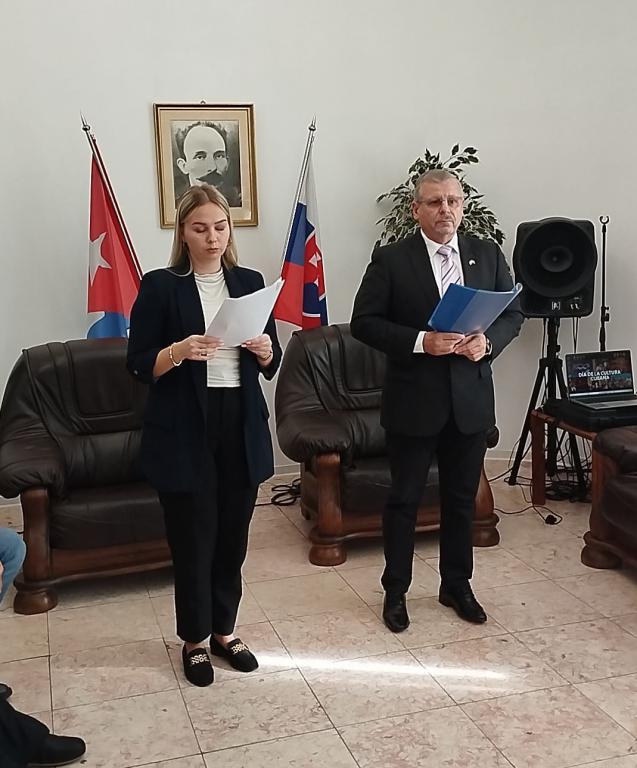 Bratislava, 18 de octubre de 2025 – La Embajada de Cuba en la República Eslovaca, realizó actividad político-cultural en conmemoración del día de la cultura cubana, con presencia de miembros de la Asociación de cooperación y solidaridad eslovaco-cubana “José Martí”, la Asociación de amigos de Cuba en Eslovaquia, cubanos residentes y amigos eslovacos.