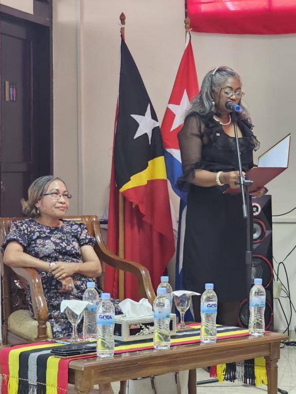 El evento también contó con la presencia de la jefa de la Casa Civil, Sra. Jesuína Ma. Ferreira Gomes, quien asistió en representación del presidente de la República Democrática de Timor Leste, e hizo los honores de velar el sitio de honor reservado para el Apóstol nacional de Cuba, José Martí.