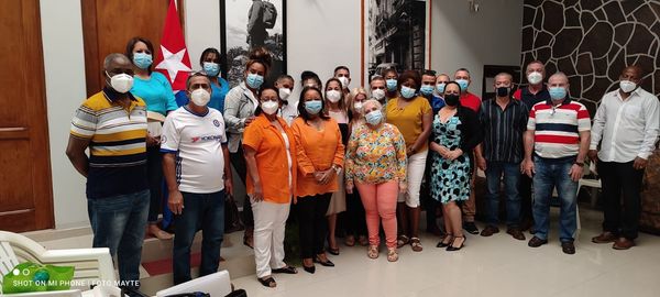 La embajadora Rosa Wilson, una representación de los cooperantes radicados en Praia y la coordinadora nacional, María Caridad Pérez, dieron la bienvenida al nuevo grupo en la sede de la Embajada cubana.