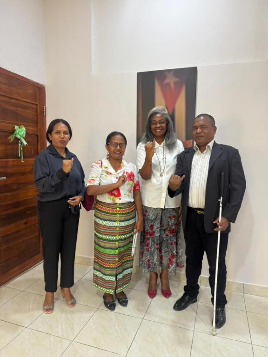 Díli, 28 de enero de 2026. En la sede de la embajada de Cuba en el país, la jefa de Misión, Alina Aldama, recibió a Gaspar Amaral, Gilberta Santos Pereira y Paulina da Conceição, quienes son los máximos representantes de la organización de la sociedad civil a nivel nacional.