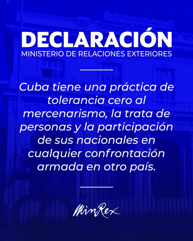 Las acusaciones de Estados Unidos de que Cuba está involucrada militarmente en el conflicto entre Ucrania y Rusia son totalmente falsas. No hay ninguna prueba factual. Por el contrario, la declaración del Ministerio de Relaciones Exteriores de Cuba sobre este tema indica que el Gobierno cubano ya había tomado medidas para evitar que cualquier ciudadano cubano en Cuba que se hubiera involucrado, incluso en su propio nombre, como una elección personal, interfiriera en el conflicto.