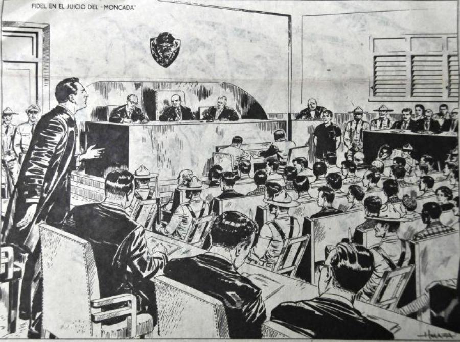 Era el 16 de octubre y el acusado era el abogado y líder revolucionario Fidel Castro Ruz, quien al asumir su propia defensa afirmó que «nunca un abogado ha tenido que ejercer su oficio en tan difíciles condiciones; nunca contra un acusado se había cometido tal cúmulo de abrumadoras irregularidades. Como abogado, no ha podido ni tan siquiera ver el sumario y, como acusado, hace hoy 76 días que está encerrado en una celda solitaria, total y absolutamente incomunicado, por encima de todas las prescripciones humanas y legales».