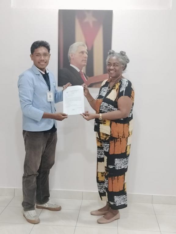Díli, 10 de marzo de 2026. La embajadora de la República de Cuba en Timor Leste, Alina Aldama, recibió a los estudiantes de la Facultad de Ciencias Sociales de la Universidad Nacional de Timor Lorosa´e (UNTL), quienes acompañados por el Dr. Joaquín de Jesús Vaz, coordinador de la Solidaridad con Cuba, han organizado un taller para compartir experiencias, conocimientos y opiniones con varios embajadores, donde Cuba tendrá un espacio como ponente a través de su máxima representante diplomática en el país.