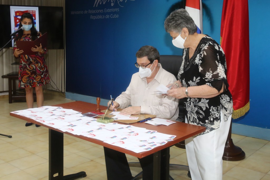 En el acto estuvieron presentes, además, directivos del Ministerio de Comunicaciones y del Grupo Empresarial Correos de Cuba y funcionarios del Minrex.