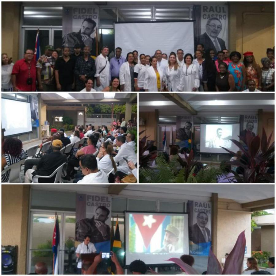Kingston, 25 de noviembre de 2025. La Embajada de Cuba en Jamaica fue sede del acto central en ocasión del noveno aniversario de la desaparición física del Comandante en Jefe Fidel Castro Ruz. Estuvieron presentes miembros de la Misión Estatal, del Movimiento de Solidaridad y la comunidad cubana residente; así como representantes de fuerzas políticas, movimientos sociales y graduados en nuestro país.