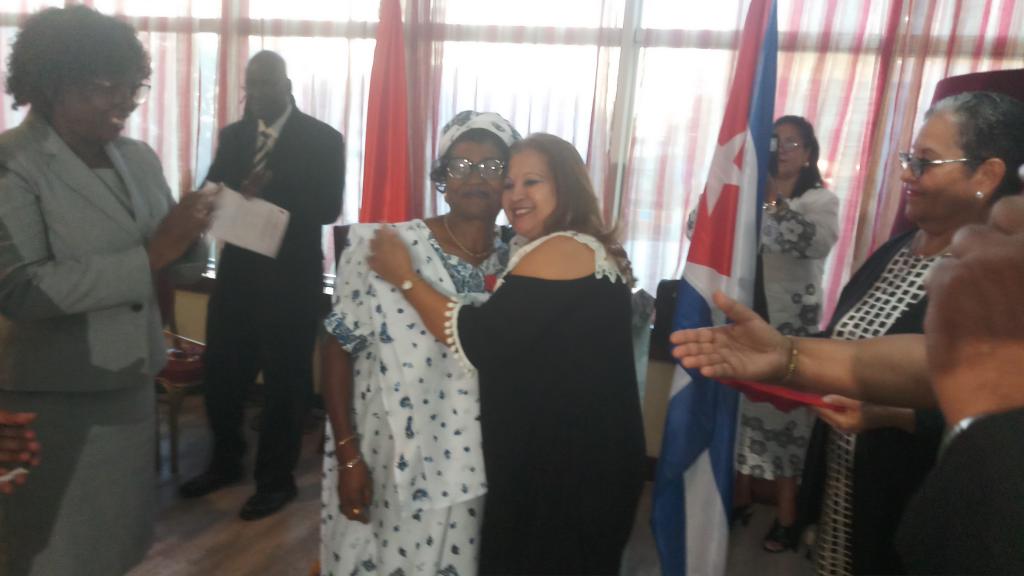 Fue la secretaria general de la Federación de Mujeres Cubanas (FMC), Teresa Amarelle Boué, la encargada de entregar el reconocimiento, en compañía de la embajadora Esther Armenteros y de otros integrantes de la legación diplomática de la mayor de las Antillas.